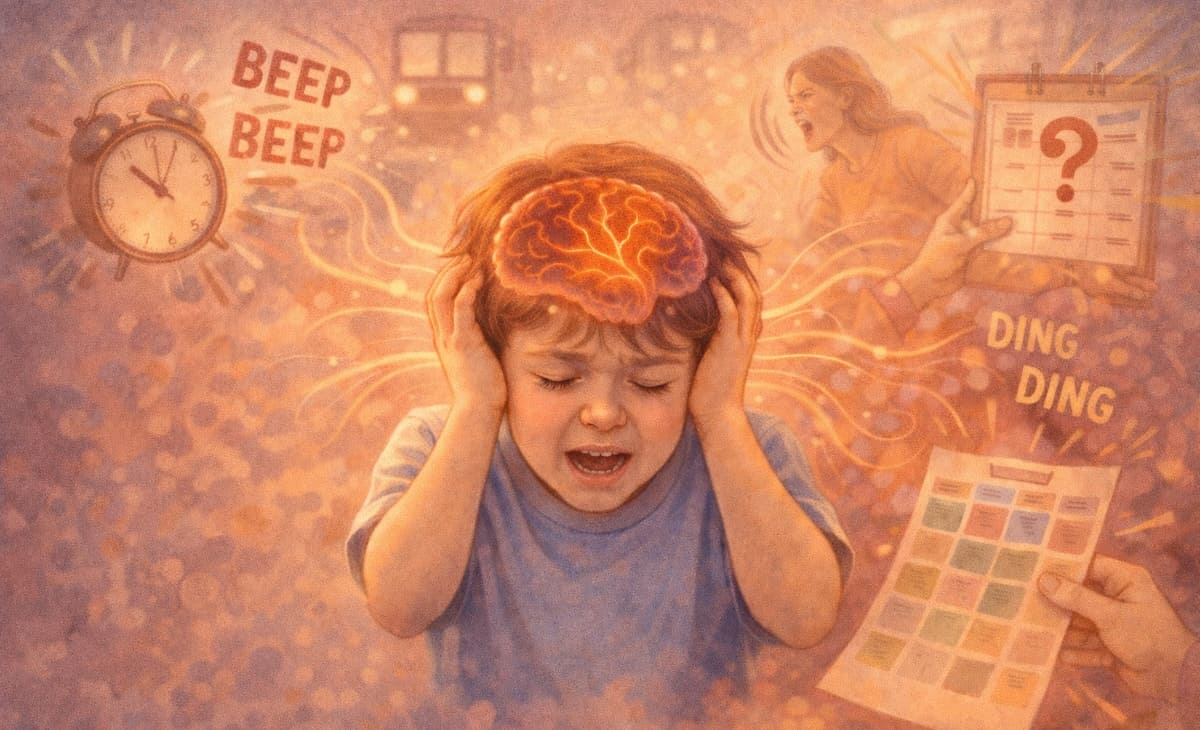 Его нервная система не фильтрует входящую информацию так, как у нейротипичного ребёнка. Она пропускает всё, всегда, на полную громкость. Отсюда истерики, срывы, уход в себя, агрессия — не каприз, а перегрузка.